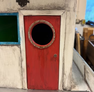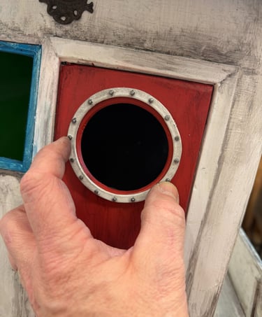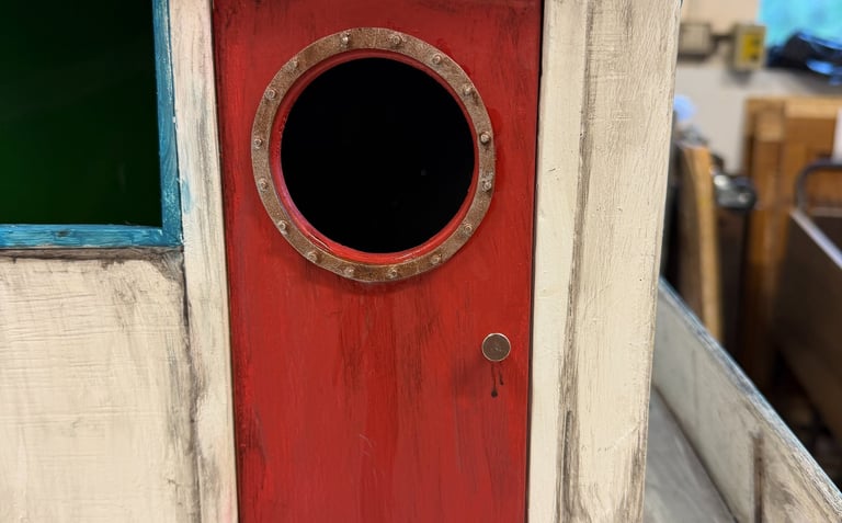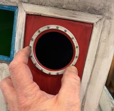 The round window on the cabin door needed something more convincing than painted foam.
