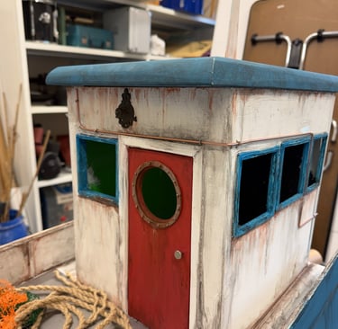 The result softened the boldness of the blue and red and grounded the boat visually. It no longer felt painted. It felt worked.