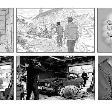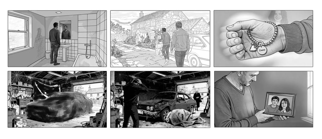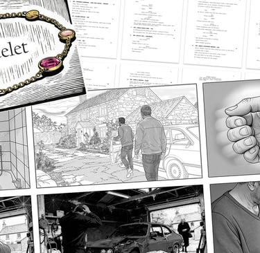 Developing the storyboard alongside the script reinforced this approach. By focusing only on the key narrative moments, the storyboard became a tool for testing intention rather than coverage. Each frame had to earn its place by advancing character, tension, or meaning within The Bracelet (Fig. 2). This process helped ensure that the script was already thinking visually before moving into previs or animation.
