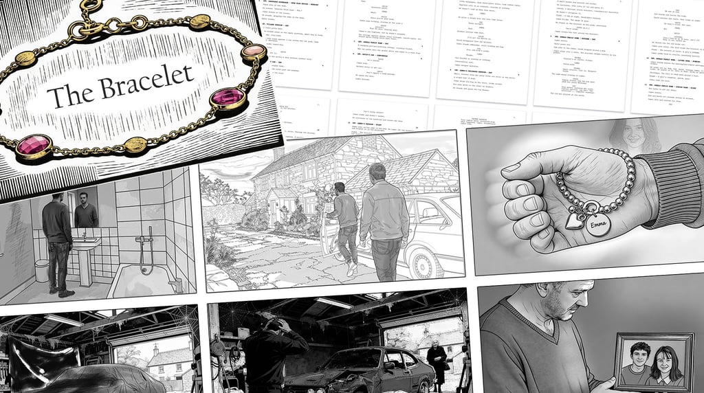 The final draft of The Bracelet reflects that shift in thinking. Rather than overexplaining emotion through dialogue, the script relies on implication, behaviour, and visual action to communicate inner states (Fig. 1). This was a deliberate move away from telling the audience how characters feel, and towards trusting the image and performance to do that work instead.