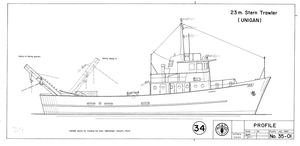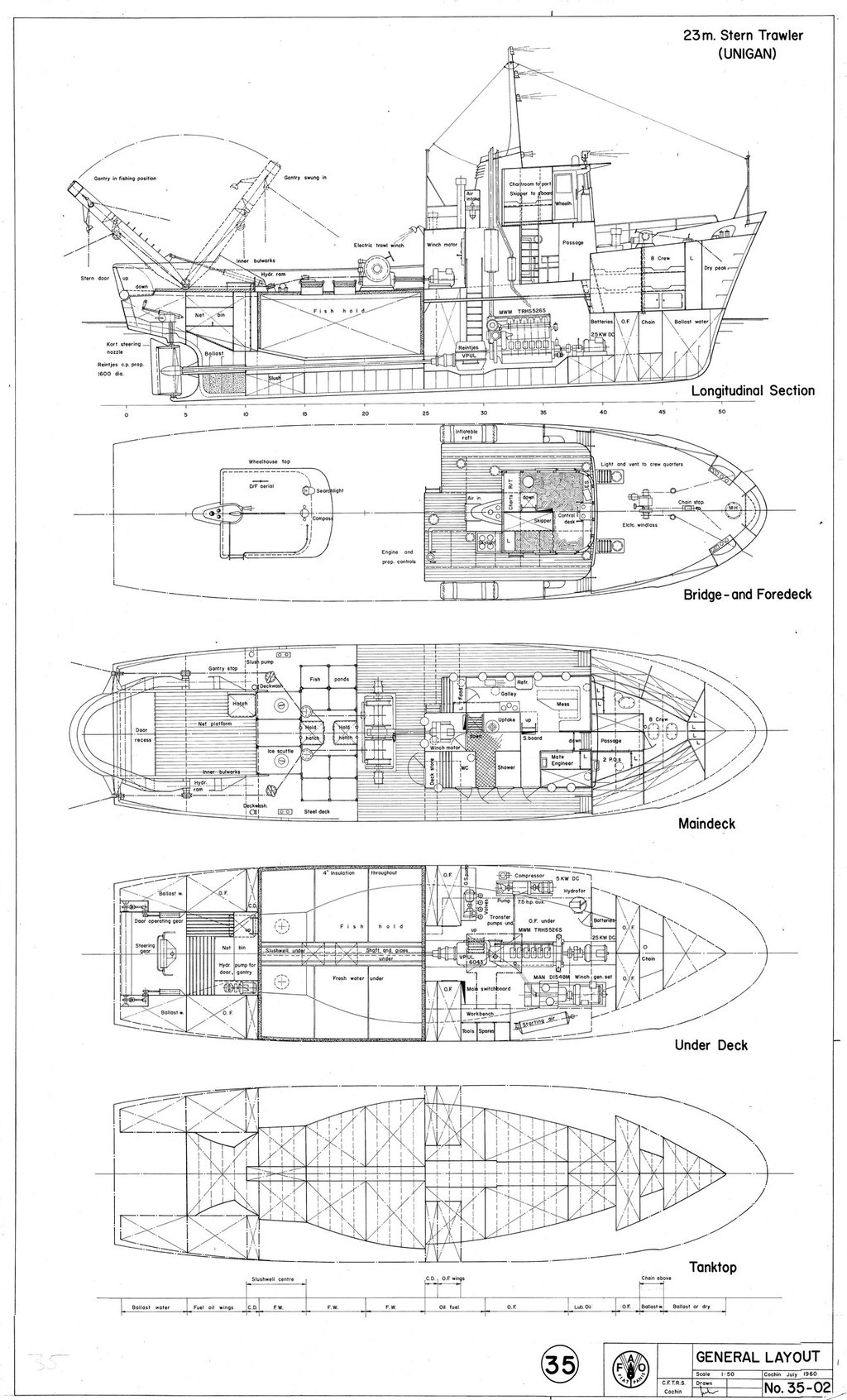 Fisheries and Aquaculture (2025). Fig. 5 and Fig. 6: 23 m stern trawler. Available at: https://www.fao.org/fishery/en/vesseldesign/ind-35 (Accessed: 20 December 2025).
