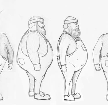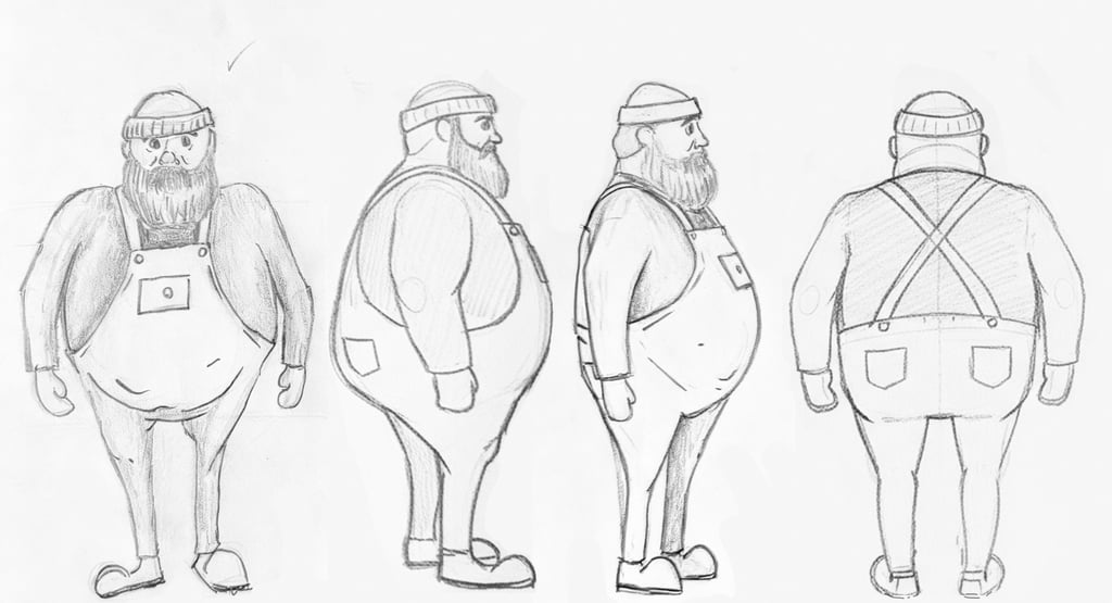 Campbell, A. (2025). Fig. 1: Reg the fisherman turnaround drawings [Pencil drawing].