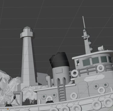 This approach mirrors professional previs workflows and has already saved time by identifying shots that would be impractical to achieve once everything is built in cardboard and foam. I’ll repeat this process when creating mock-up sets of the boat, lighthouse, rocks, and figures.