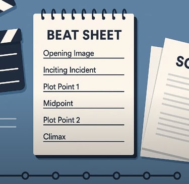 A beat sheet is a screenwriting tool that maps out a story’s key plot points and emotional shifts in a concise, bulleted structure. Rather than dealing in full scenes or dialogue, it breaks a narrative down into clear “beats” — moments where something changes, information is revealed, or the direction of the story shifts.