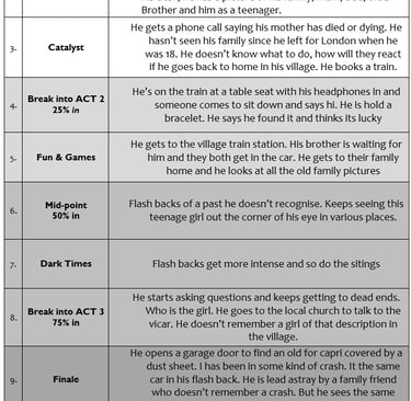 Functionally, it serves as a structural blueprint for a film or television script, laying out significant events in chronological order without bogging down in prose. This makes it especially useful in early development, where the focus is on story logic, pacing, and emotional progression rather than polished writing.
