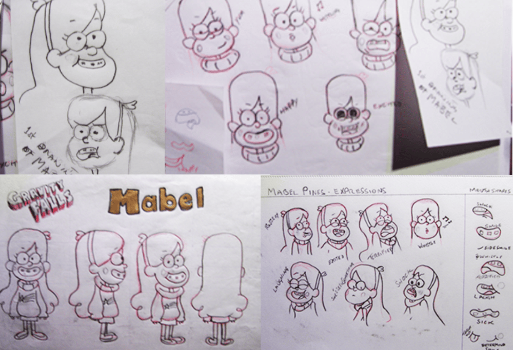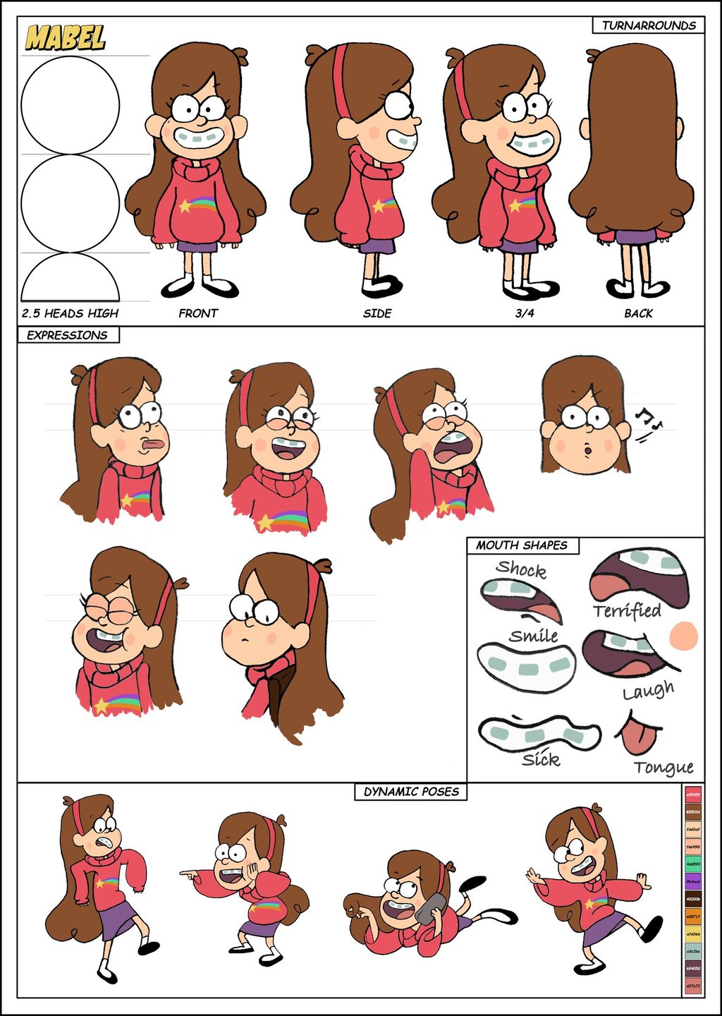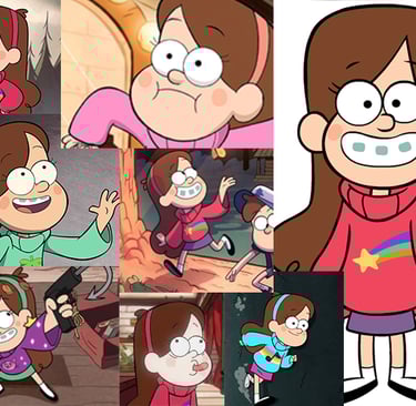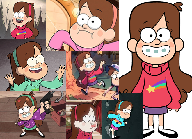 Appearance: I studied Mabel’s appearance, including her facial features, body structure, and unique design elements such as her colorful sweaters and headbands.