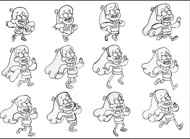 Personality: I explored Mabel's personality and how it was expressed visually through her movement, posture, and facial expressions. Mabel is known for her optimism, outgoing nature, and full-of-life attitude.