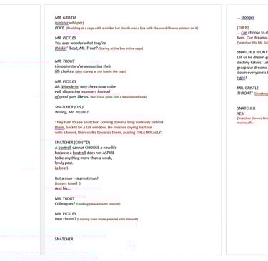 Having spent over 12 years reading scripts as a voice actor, I am accustomed to interpreting dialogue and pacing. However, working with a movie script presented a different set of considerations. Initially, translating the scene into a visual sequence felt unfamiliar, but as I continued, I found myself naturally picturing the action. Before long, I had a fully realized breakdown, complete with detailed notes.