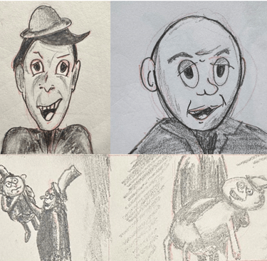 As the project progressed, I refined the sketches of Mr. Pickles and Mr. Trout, ensuring they aligned with the final storyboard’s aesthetic and storytelling goals. Additional images were also polished and integrated into the completed storyboard.