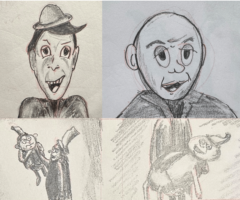 Once I had gathered a substantial collection of references, I constructed my design board and sketched the characters based on their descriptions in the script. I applied principles from Task #1, using shape language to define personalities: