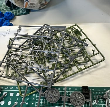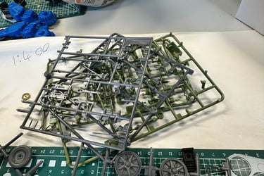 With the foundation complete, it was time to start greebling. To add intricate details, I purchased three model kits—a tank and two different types of military guns, which proved invaluable for this build. I also scavenged various bits and pieces from home. The wings on either side, for instance, were made from laminate floor spacers, adding a practical yet effective touch to the design.