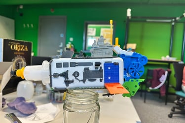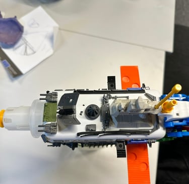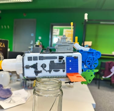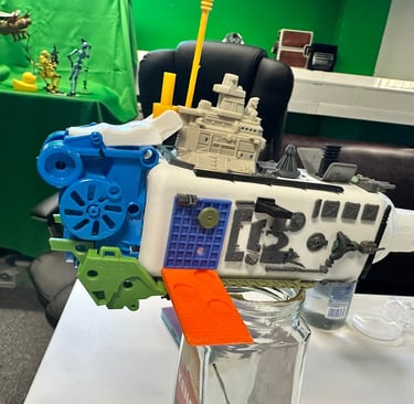 This task was designed to develop our competencies in practical model making, digital fabrication, and cinematic visual effects integration. We were tasked with designing and constructing a model flying vehicle, incorporating custom-designed components created in Blender and produced via 3D printing. Once assembled, the model was meticulously detailed using greebling techniques and filmed against a greenscreen for seamless compositing into a digital VFX environment.