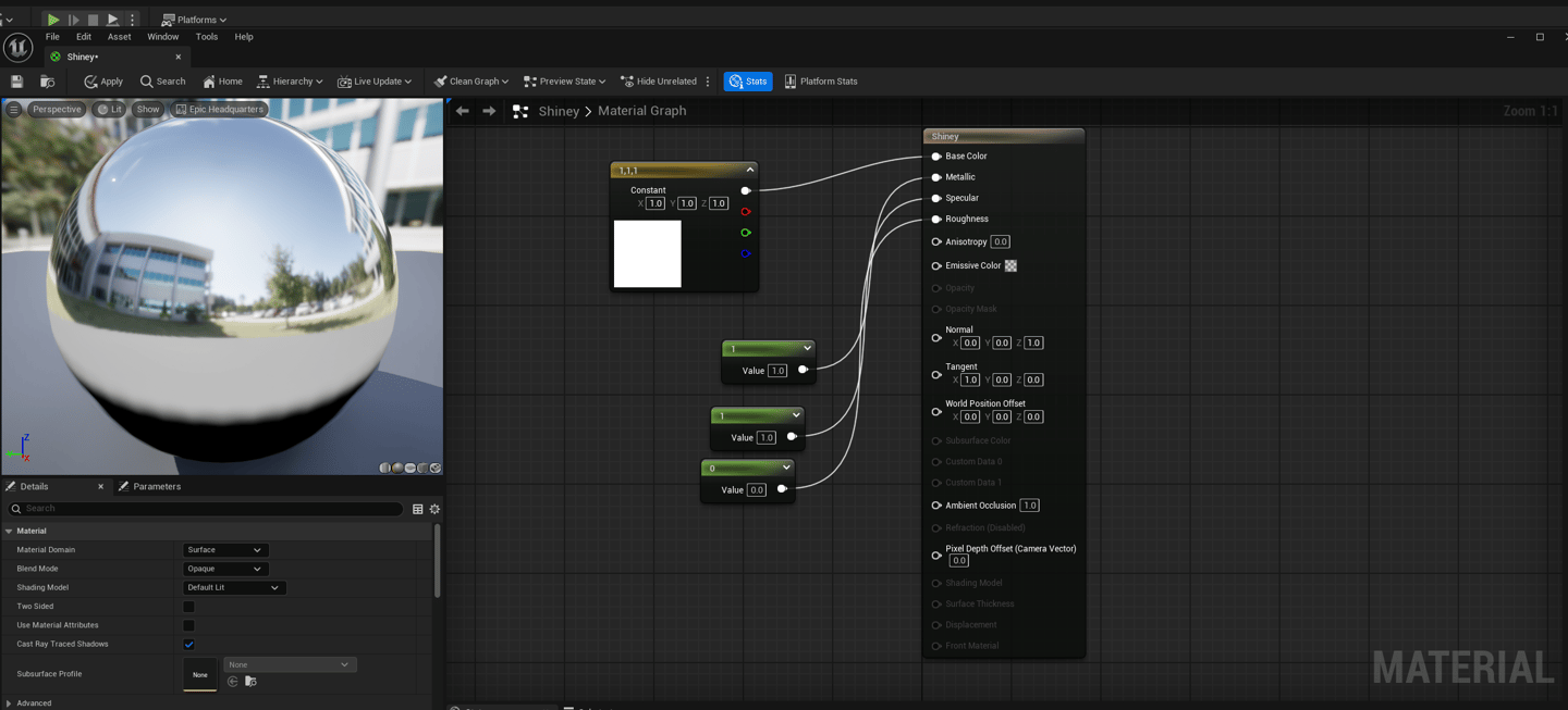 While working on the asset library, I also took the opportunity to learn how to create a mirrored material from scratch in Unreal Engine. This process involved understanding reflection parameters, adjusting material properties, and fine-tuning shader settings to achieve a realistic mirror effect. It was a valuable skill to develop, as reflective surfaces play a crucial role in enhancing visual fidelity within 3D environments.
