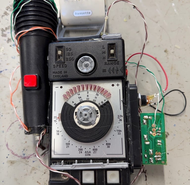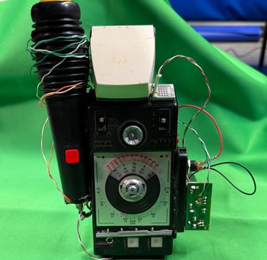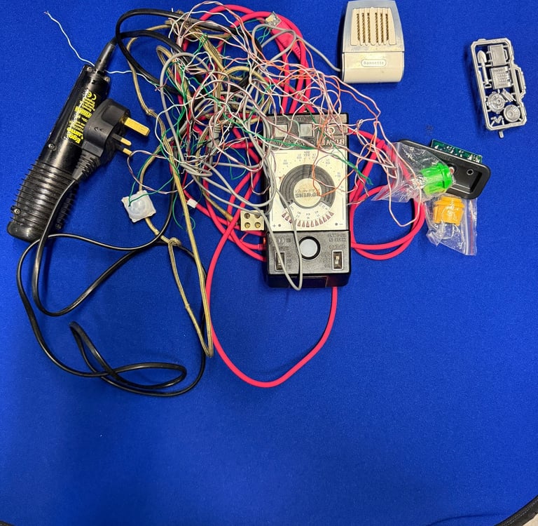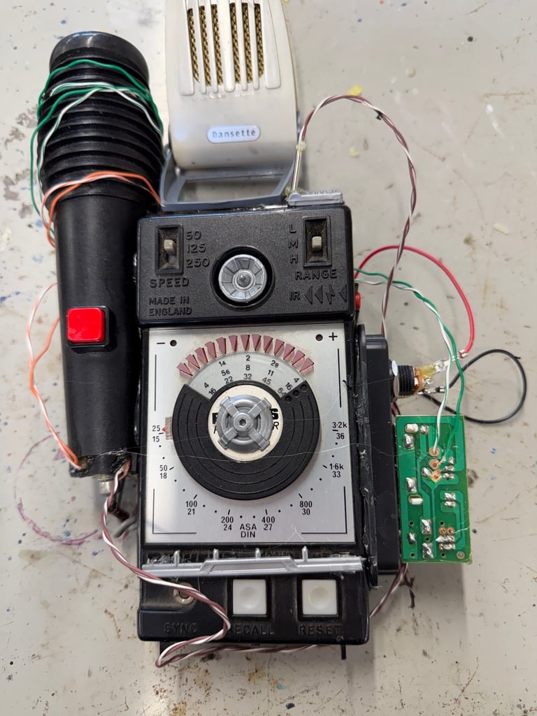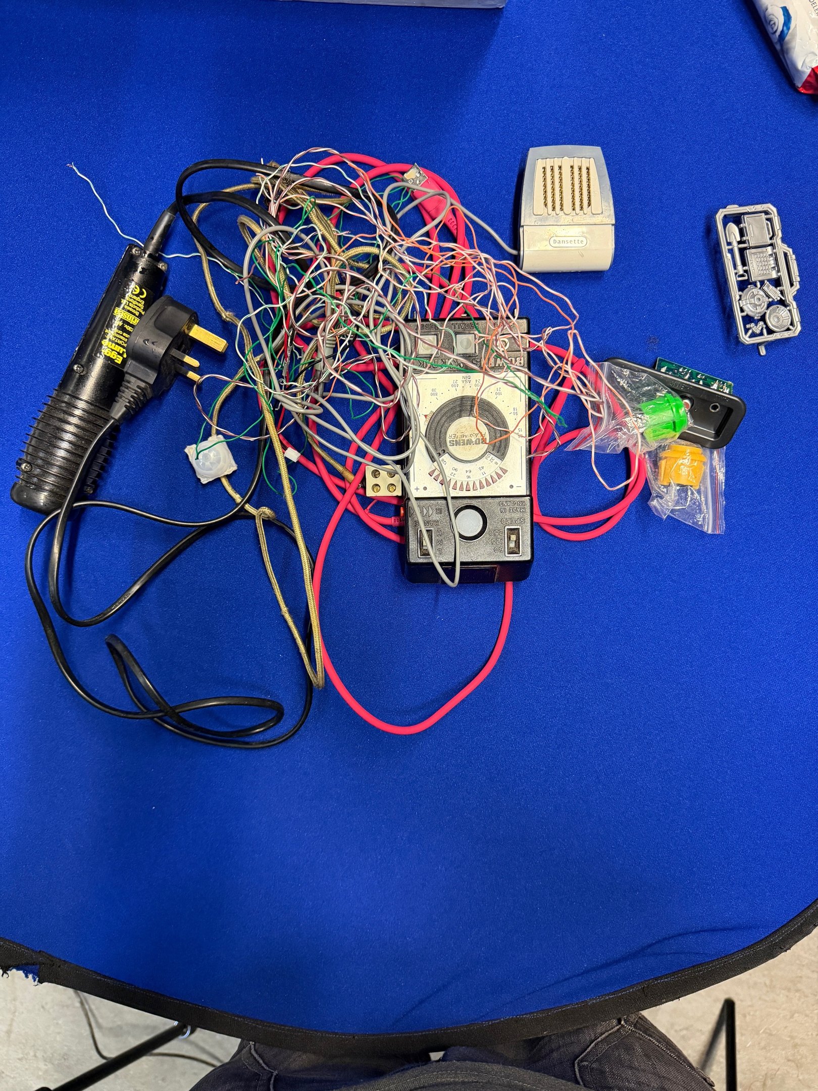 Rather than designing something from scratch in a polished way, I leaned into a more instinctive approach. I gathered whatever I could find — old electronics, wires, switches, and spare components — and treated it as almost a form of kitbashing.