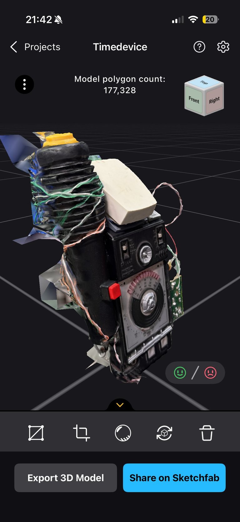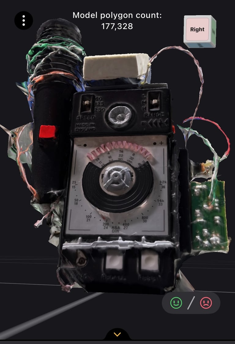 Once the prop was built, I used RealityScan on my iPhone 17 Pro to create a 3D scan of the device. This step was important for two reasons.