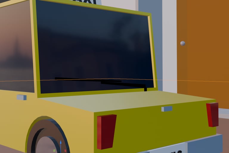 A secondary source of inspiration came from the stop-motion animation Negative Space, particularly the distinctive design of the taxi featured in the film. I decided to reinterpret my original car as a taxi, incorporating subtle nods to that influence. One detail I enjoyed creating was the number plate, where I extruded the letters to resemble the depth and style of 4D plates, giving it a more tactile and realistic quality.