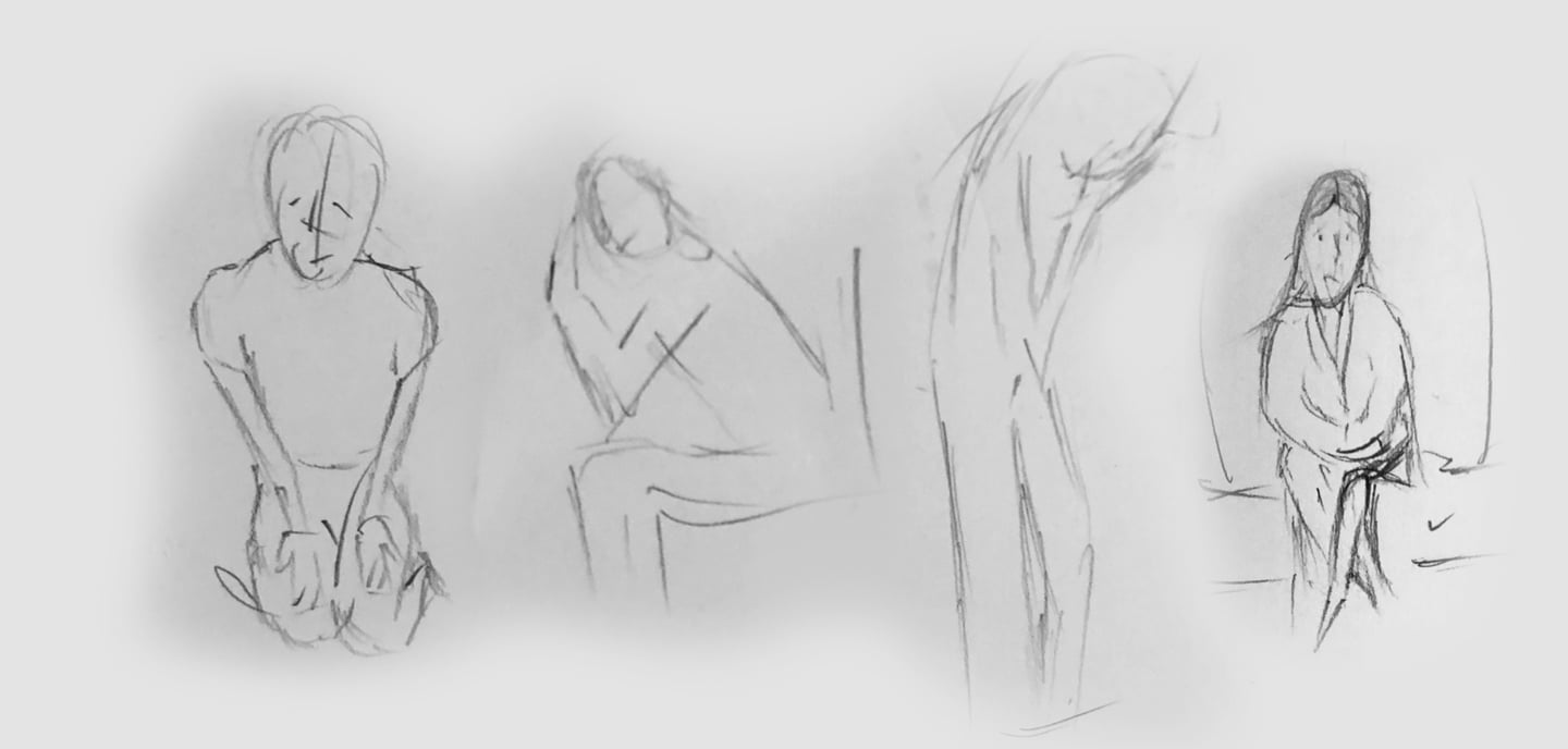 In addition to animating excitement, another essential aspect of character animation is conveying emotions, such as devastation. As part of your sketchbook assignment, I created a series of sketches showcasing different human poses that communicated this feeling. This exercise was quite challenging for me as I had to be loose with my sketching as I normally pay too much attention to detail.